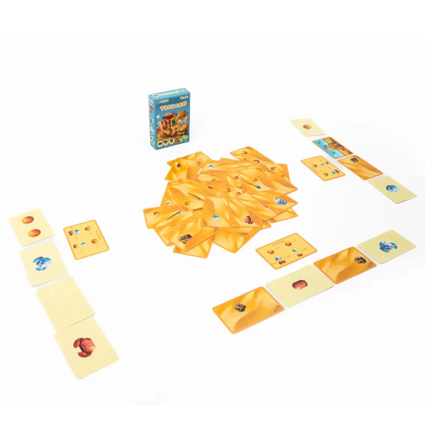 Les joueuses et joueurs partent à la recherche des trésors enfouis dans le sable et pourront, grâce à des indices, optimiser leurs choix. A leur tour, les joueurs peuvent prendre un carte du centre de la table si celle-ci est partiellement recouverte par une autre. Des indices présents sur la carte indiquent le trésor qui se cache au dessous.