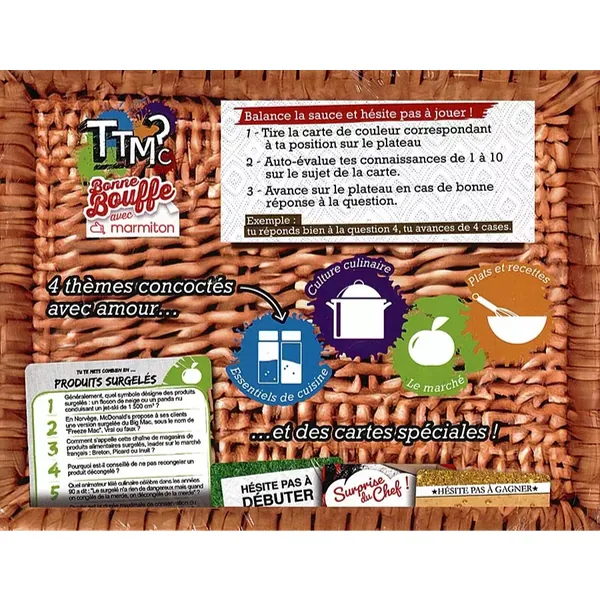 TTMC Bonne Bouffe avec Marmiton, variante de TTMC – Tu Te Mets Combien ? est un jeu d’ambiance où tu auto-évalues tes connaissances de 1 à 10 sur une multitude de sujets.