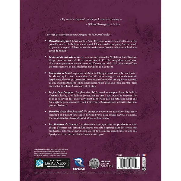 - Le Jeu du primogène : empêchez l’accession au pouvoir d’un vampire qui ne rêve que de la fin des anarchs.