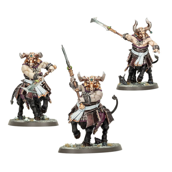 Les Centaures-taureaux sont des mutants censés avoir été bénis par Hashut. Ils sont élevés dans la dévotion due aux demi-dieux, et leurs moindres caprices sont exaucés en échange d’une loyauté fanatique pour le culte du Père dans les Ténèbres. La plupart des Centaures-taureaux sont organisés en hardes piétineuses et ont pour rôle de briser la ligne de bataille ennemie pour démontrer leur supériorité. Grognants et grimaçants, ils galopent à travers le champ de bataille, convaincus de leur puissance, et frappent de leurs masses et de leurs marteaux.