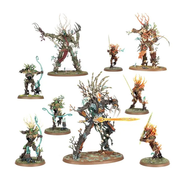 Les antiques esprits des Sylvaneths se dressent pour défendre les régions naturelles des Royaumes Mortels contre les intrus qui aspirent à les profaner. Dans les situations extrêmes, de puissants Sylviarques sortent en grands nombres, avançant pesamment sur le champ de bataille pour déchiqueter leurs ennemis. À leurs pieds, de puissants Chasseurs de Kurnoth s'élancent la lame et l'arc à la main pour éliminer les ennemis affaiblis et empêcher leurs pairs plus imposants de se faire submerger.