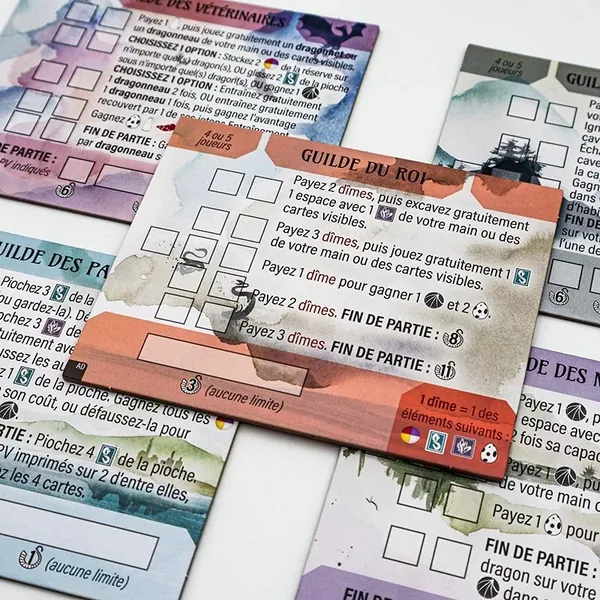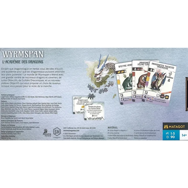 Le monde de Wyrmspan s'étend avec une grande variété de nouveaux dragons et cavernes, de tuiles Objectifs, de Guildes Draconiques, et un nouveau plateau Objectifs qui vous propose un choix de revenus lorsque vous passez pour le reste de la manche.